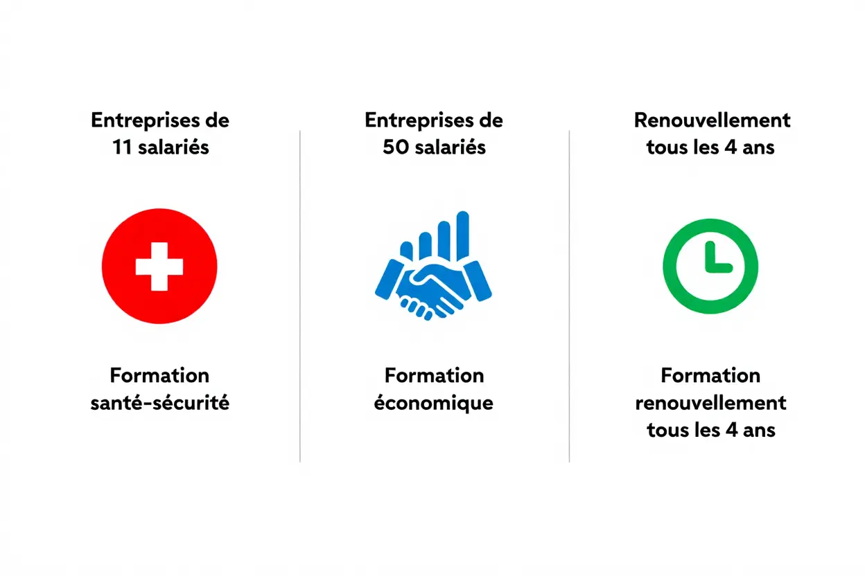 Dans les entreprises d’au moins 50 salariés, les nouveaux membres titulaires doivent impérativement suivre une formation économique. Ce module aborde des thèmes comme l’analyse financière et la gestion des restructurations. Ces sessions de formation s’étalent généralement sur une durée maximale de cinq jours.